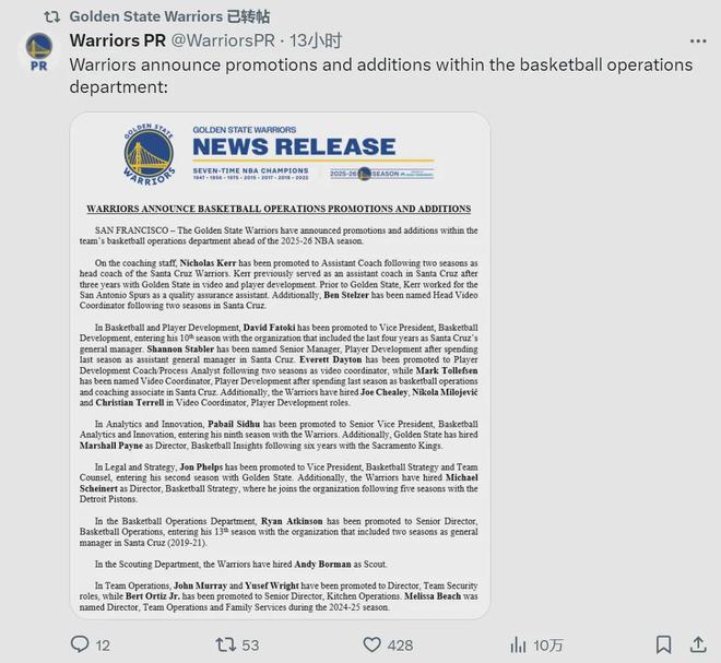 科爾親兒子!加盟勇士隊!NBA最強關系戶來了