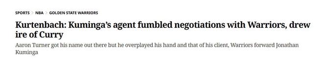 Dieter Kurtenbach坦言這就是庫(kù)里對(duì)于庫(kù)明加經(jīng)紀(jì)人特納的“公開處刑”。